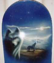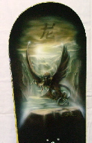 Gewehrkolben aus Holz Das Motiv ist eine Berglandschaft mit Weiskopf Adlern.