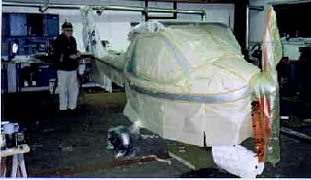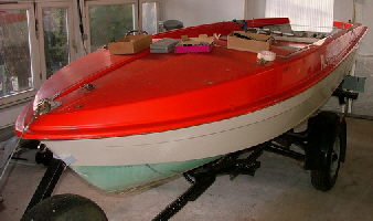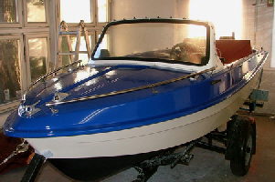Die Rekonstruktion eines Sportbootes aus GFK. Abgeschlagene Kanten wurden hier instand gesetzt und anschließend wurde der Bootskörper, innen wie außen neu Lackiert und hier dann wieder montiert.