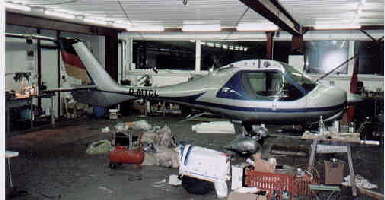Ein Sportflugzeug in einem Montage Hangars auf einem Flugplatz. Hier wurde das Wunschdesign des Flugzeuginhabers gestaltet. Benötigte Arbeitszeit ca. ein Tag .